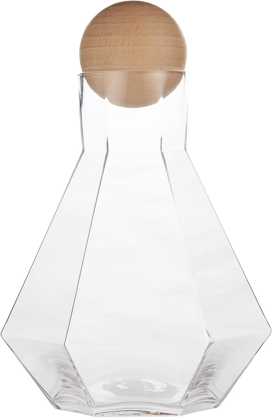 - CLEAR GLASS with pretty faceted design; pale beech wood ball topper adds modern style
