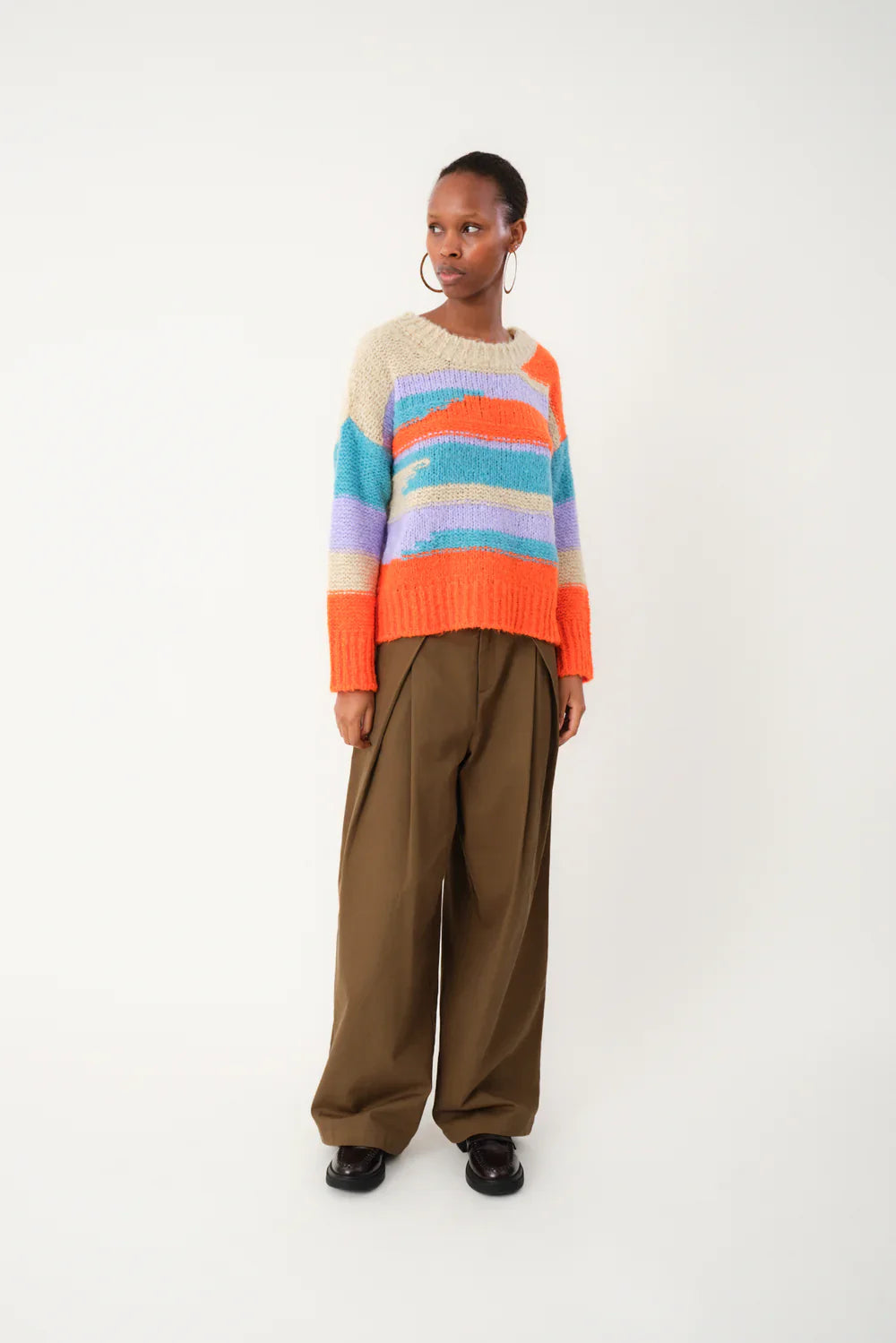 Bright, bold and full of personality, this knit takes your greyest of winter days and infuses it with Lolly's style. In a chunky textured knit, this jumper is perfect for the coldest weather, simple layer up with your thermals and pair with dark indigo jeans and funky trainers.