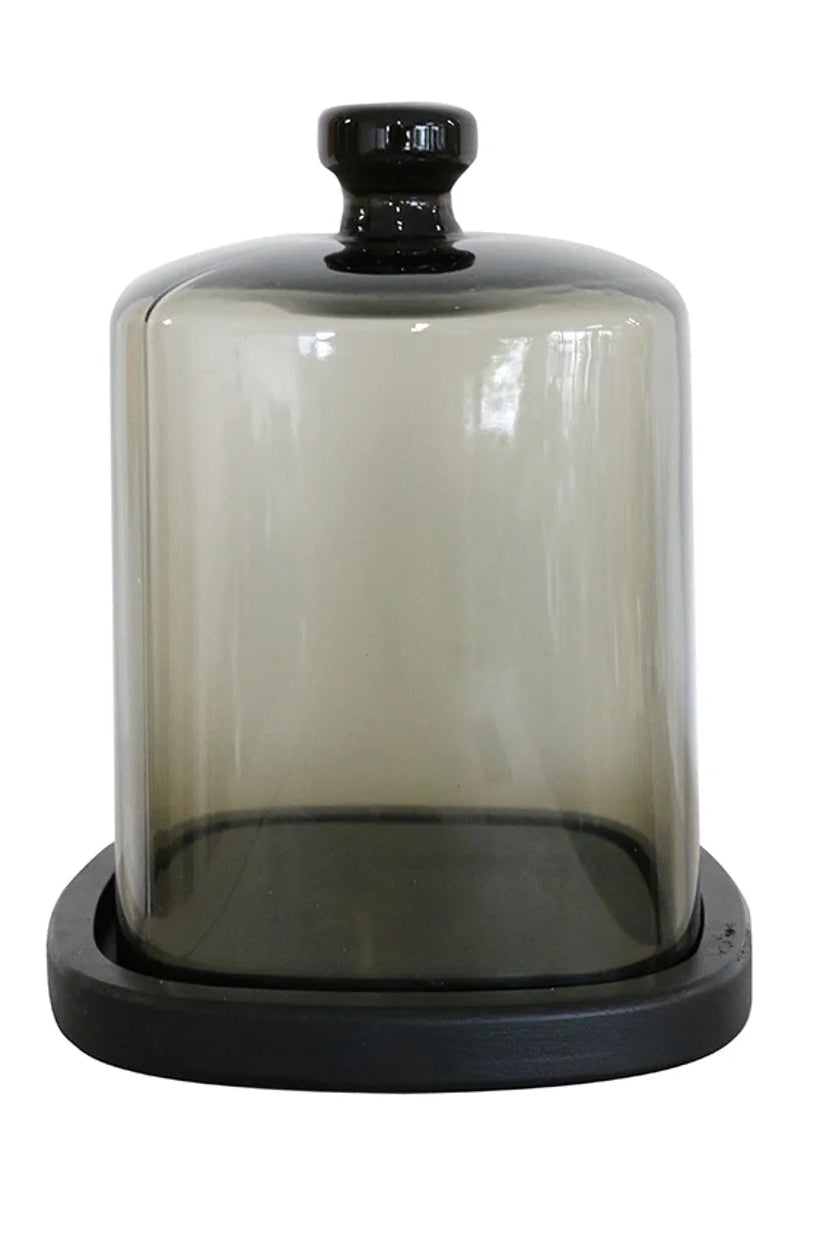 Smoke glass dome on a wooden base to showcase any special Object d'art or protect your favourite candle from dust and keep the fragarance for longer