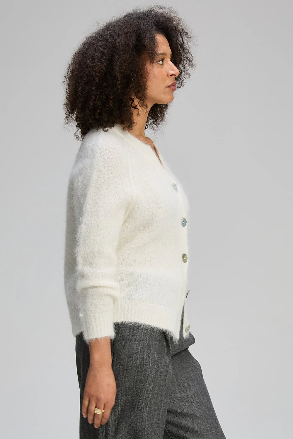 The classic button-through design and clean silhouette make it easy to wear open or closed, styled over dresses, shirts, or simple tees. It’s the kind of knit that becomes a true wardrobe staple.