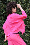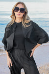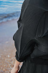 Harmoniously balancing structure and drape, the ‘Arts and Crafts’ jacket is designed intelligently to add an architectural element to your everyday wardrobe. Crafted in the soft ‘Feel the Rush’ plissé pleated fabric, this jacket is cut uniquely to peak and drape without added seams. Perfect for layering over dresses as a light layer or pair with the ‘Weekend Kicks’ pant for a full pleated moment.