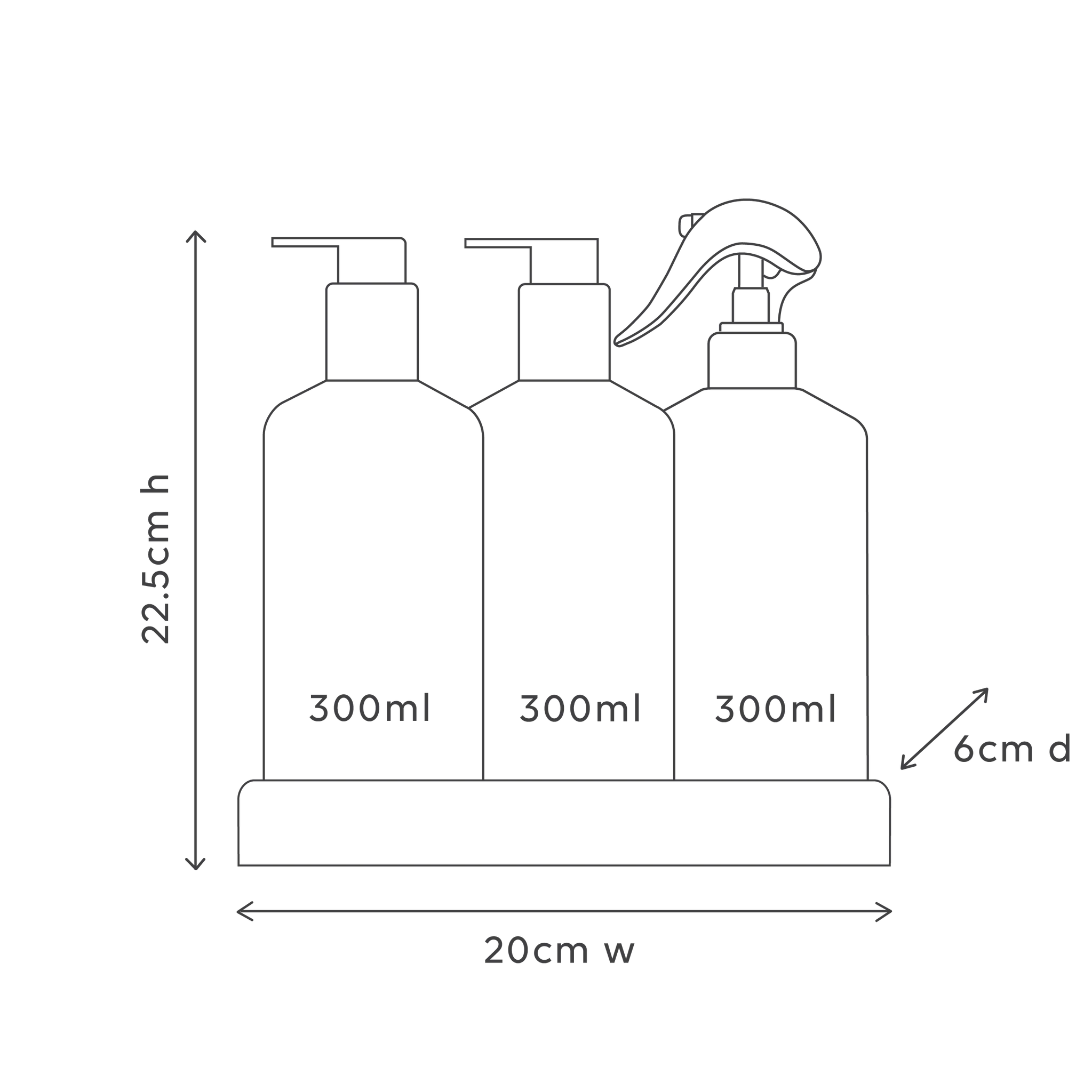 Our 300ml bottles are 100% recyclable and made from HDPE plastic. Our trays, made from ABS plastic, are designed for durability and longevity.