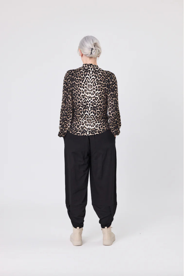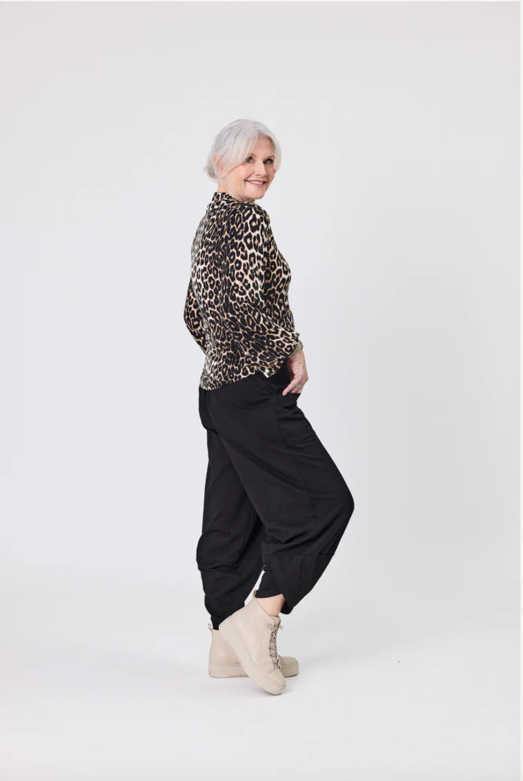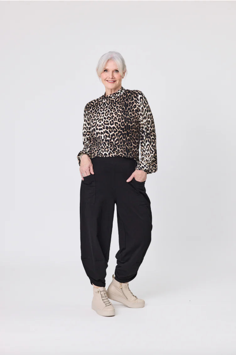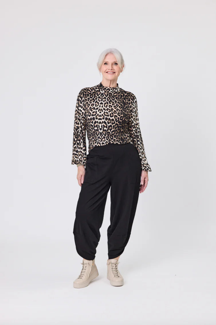 The pull-on construction eliminates unnecessary fastenings, while subtle gathering details above the elasticated ankle cuff create visual interest and ensure a refined fit. Ideal for those seeking effortless sophistication in their everyday wardrobe.