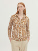 #99 basic shirt with Zebra print in sustainable crinkle cotton fabric. Shirt collar and mother-of-pearl button front. Long sleeves with vent, cuff and button. Complete with matching fabric bag.