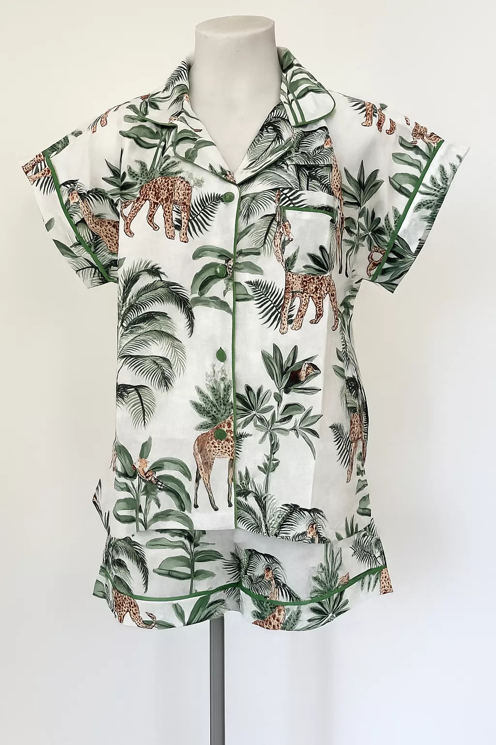 The relaxed fit and classic button-up shirt design make it perfect for lounging through warm summer days or winding down on cozy evenings.